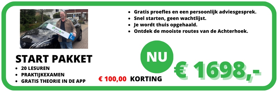 Bij i12drive.nl duurt een lesuur 60 minuten en bestaat elke rijles uit 90 minuten rij-instructie. We beginnen met een startpakket dat je goed op weg helpt in je leerproces. Naarmate je dichter bij het CBR-examen komt, bepalen we samen – op basis van jouw voortgang en ervaring – of je nog extra lessen nodig hebt om volledig zelfverzekerd het examen te kunnen aanvatten.